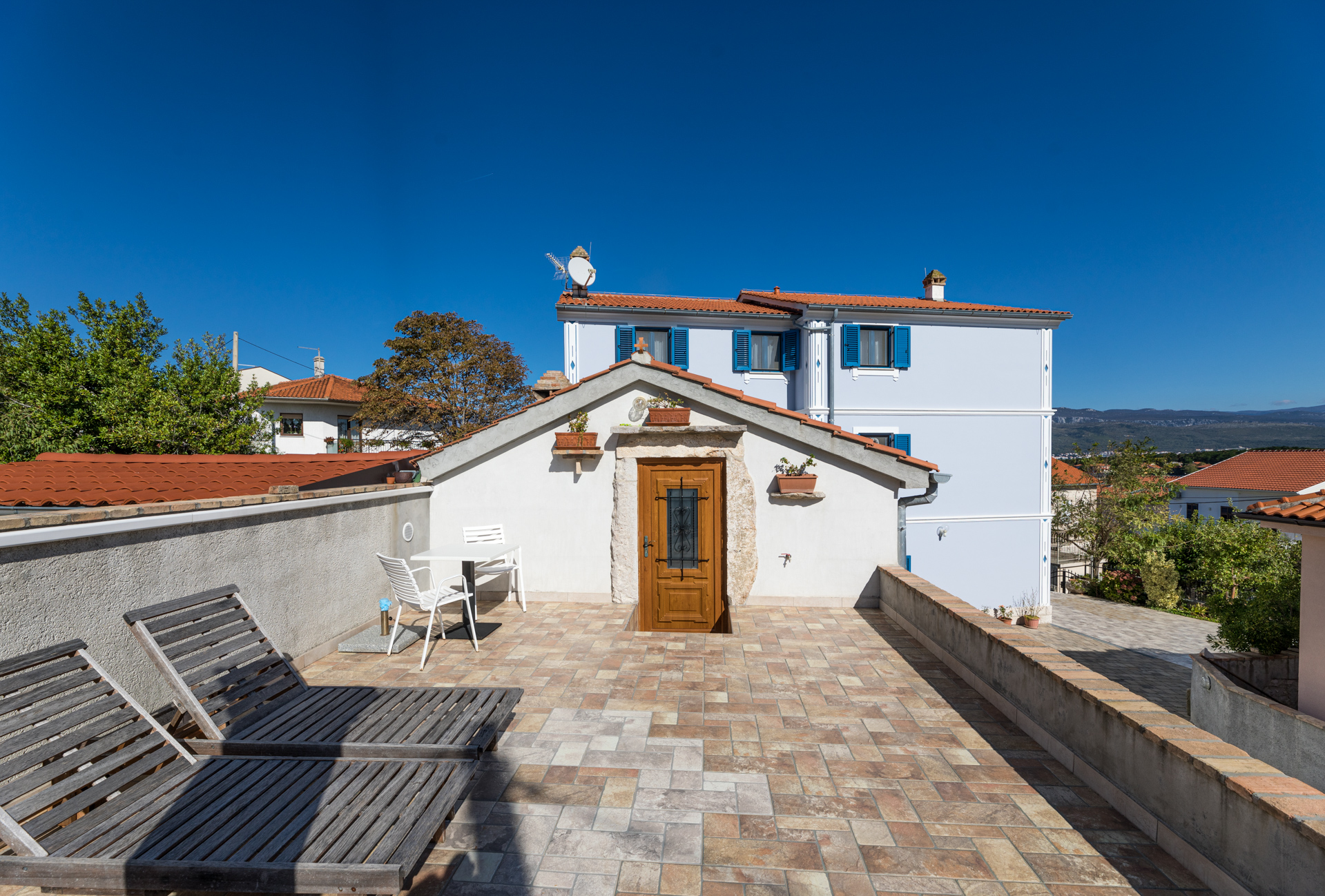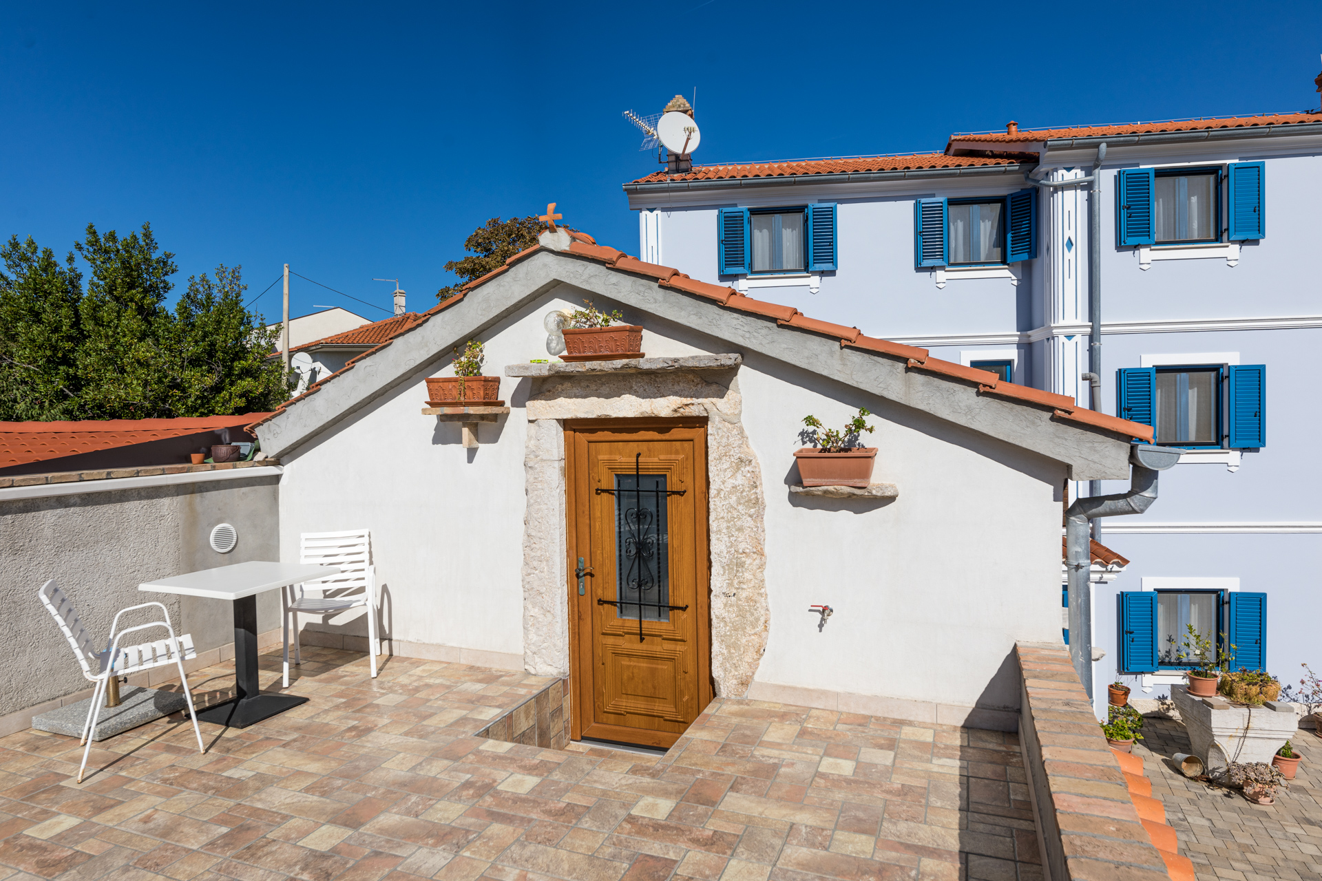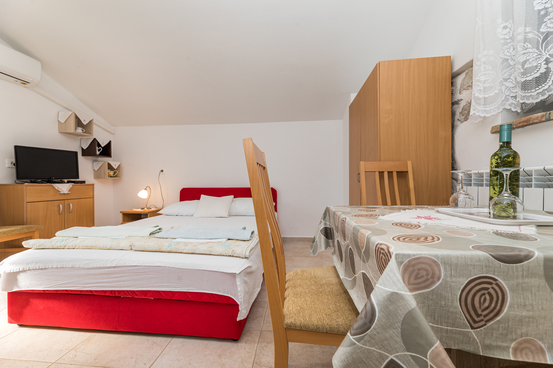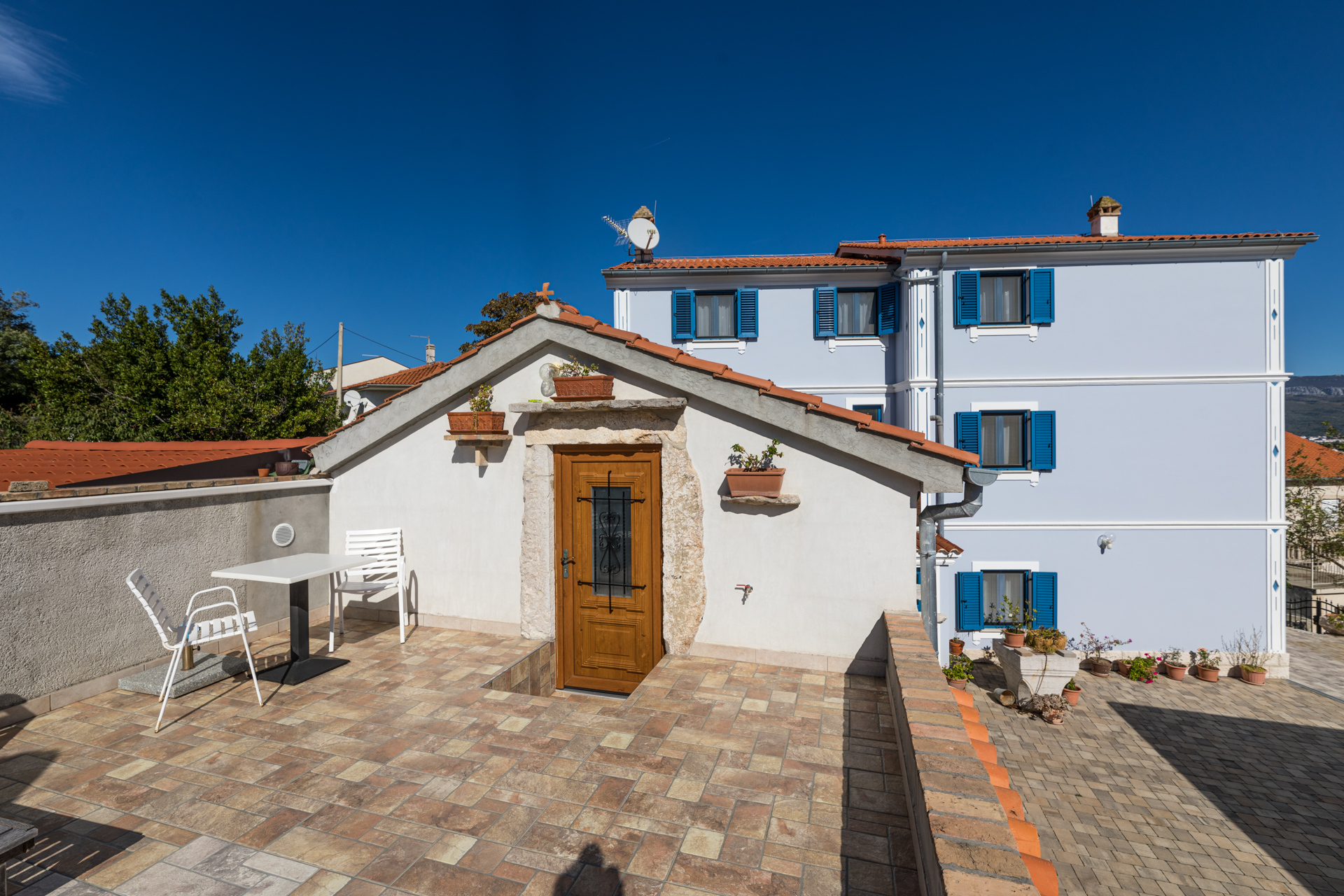 Apartments Crnčić are located in Šilo on the island of Krk. The house is located in the center of Šilo where there is a shop, restaurants, cafes, kiosk, ambulance, etc. The sea and the first beach are only 50m away, and the sandy beach “Pješčana” which is ideal for families with small children is 300m away from our house. The apartments have a sea view, are equipped with everything you need to prepare food in the kitchen, air conditioning, satellite TV and free Wi-Fi. Each apartment has a secured parking space right next to the house.