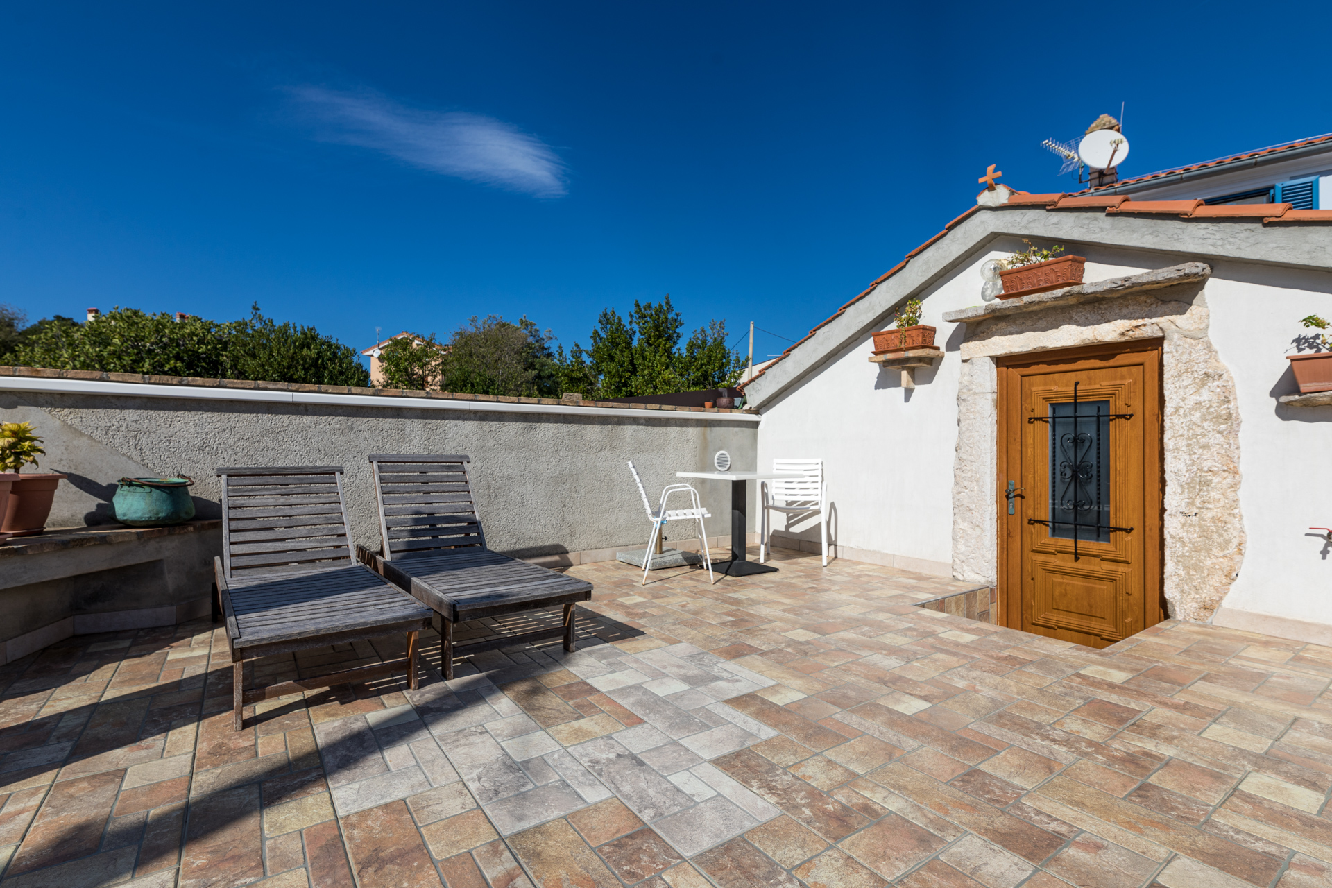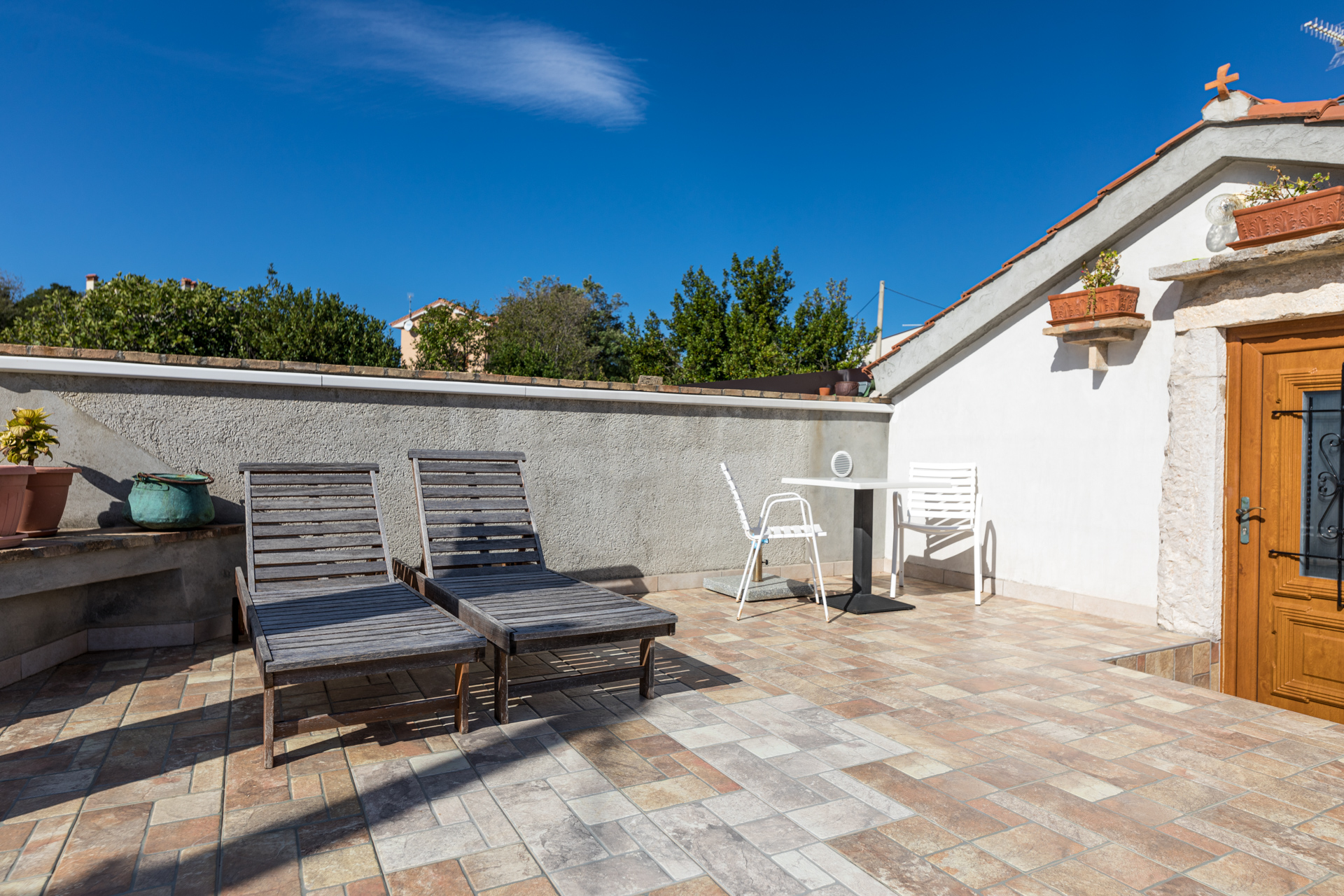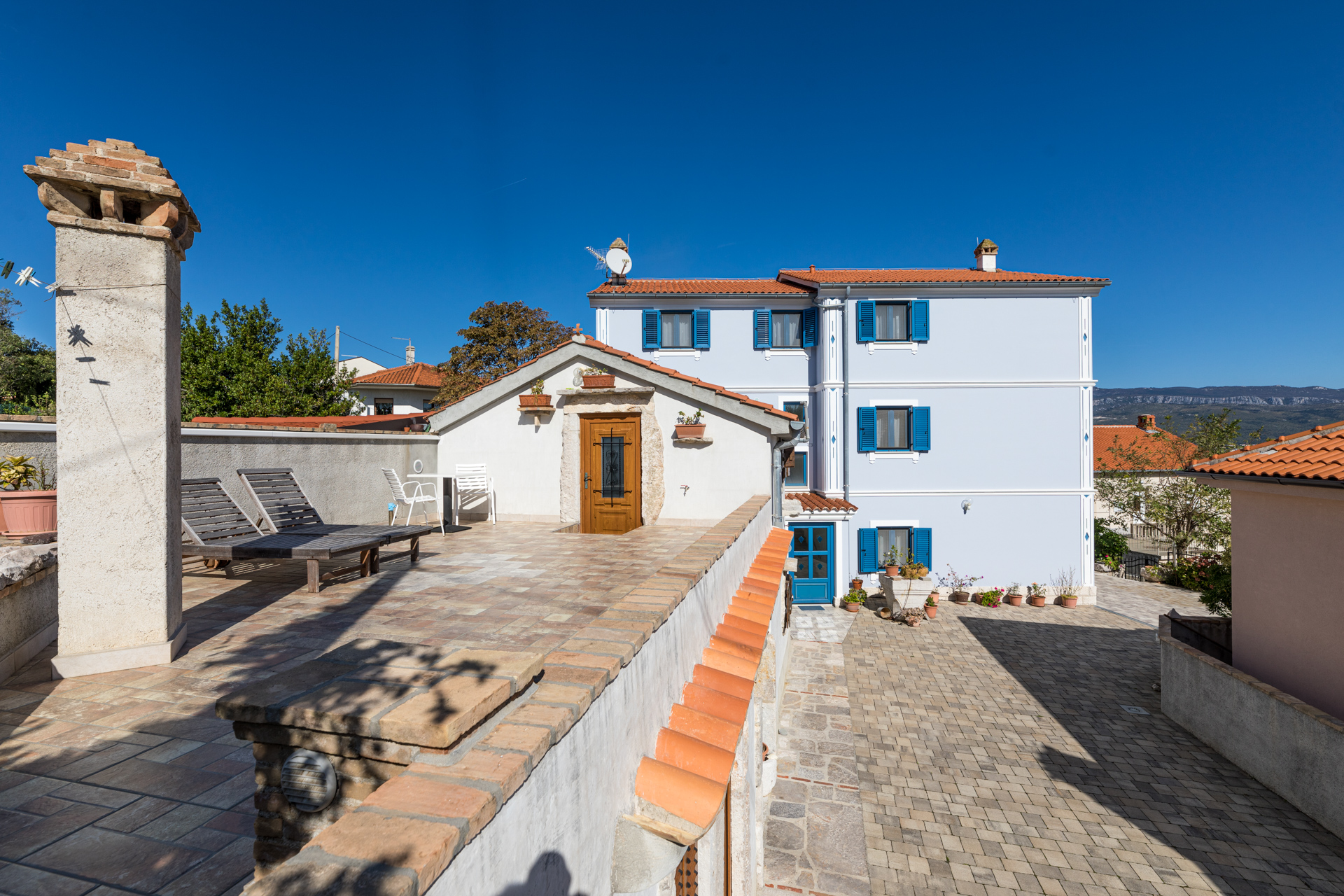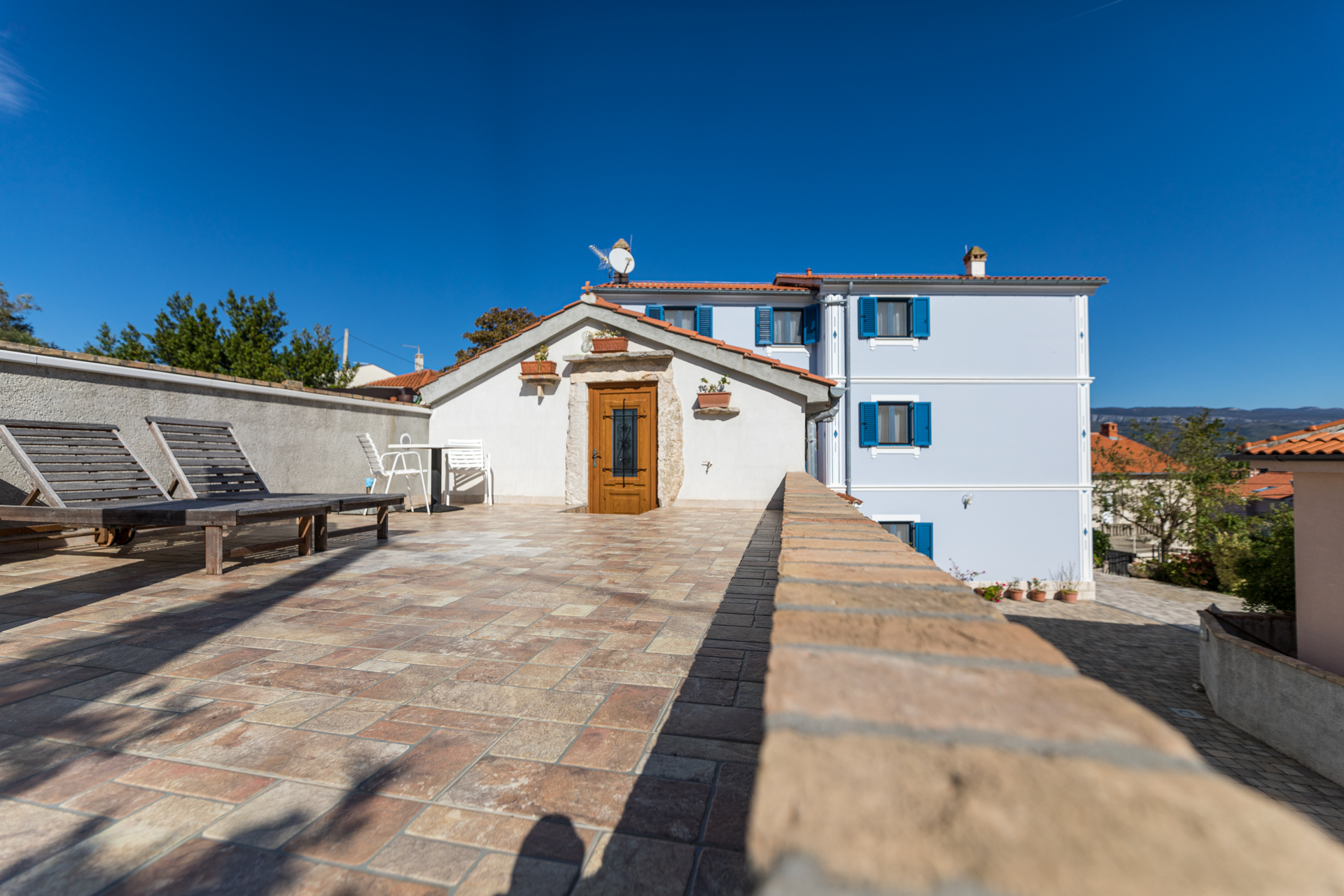Apartments Crnčić are located in Šilo on the island of Krk. The house is located in the center of Šilo where there is a shop, restaurants, cafes, kiosk, ambulance, etc. The sea and the first beach are only 50m away, and the sandy beach “Pješčana” which is ideal for families with small children is 300m away from our house. The apartments have a sea view, are equipped with everything you need to prepare food in the kitchen, air conditioning, satellite TV and free Wi-Fi. Each apartment has a secured parking space right next to the house.