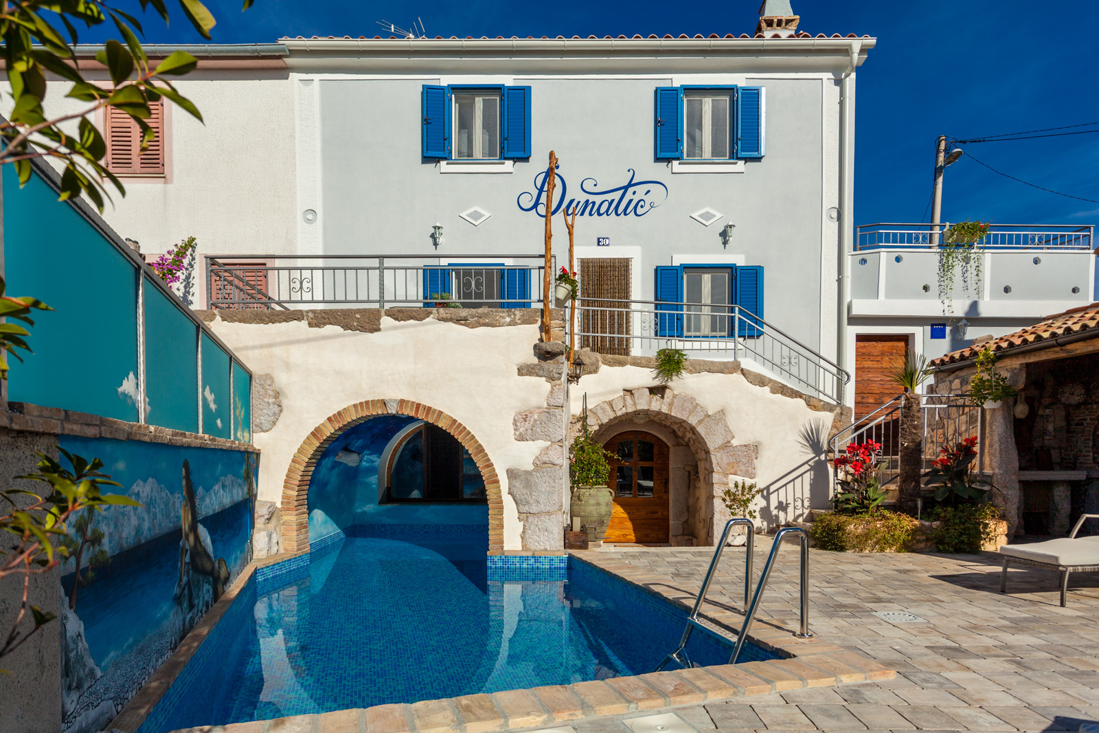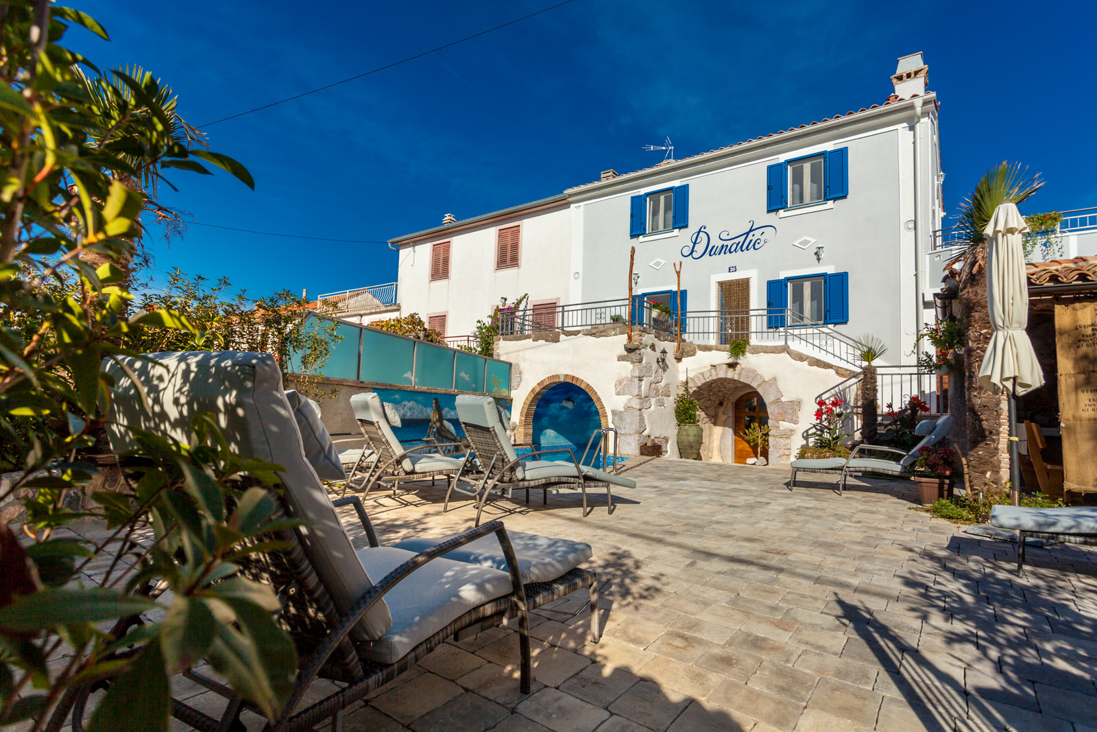 Holiday home Dunatić is located in a small village Županje which is located right between the bay Soline and Šilo. The house is decorated in Mediterranean style with a private pool, many small details and Mediterranean plants. You can swim on the beaches in Šilo (about 5km away) or Soline (healing mud – about 2,5km away). You can find an ambulance, restaurants, shops and other interesting activities in Šilo.